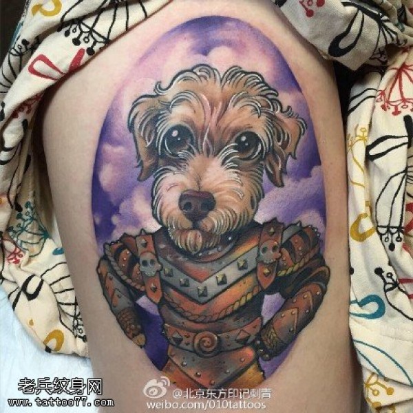 大腿上的狗战士纹身图案