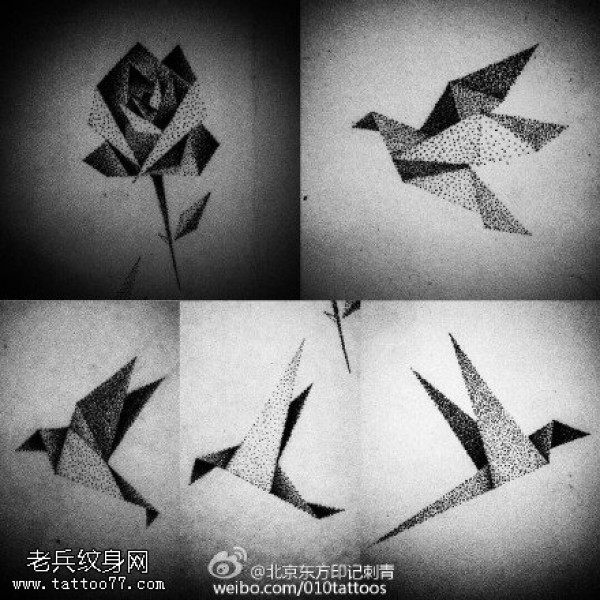 手稿点刺的千纸鹤纹身图案