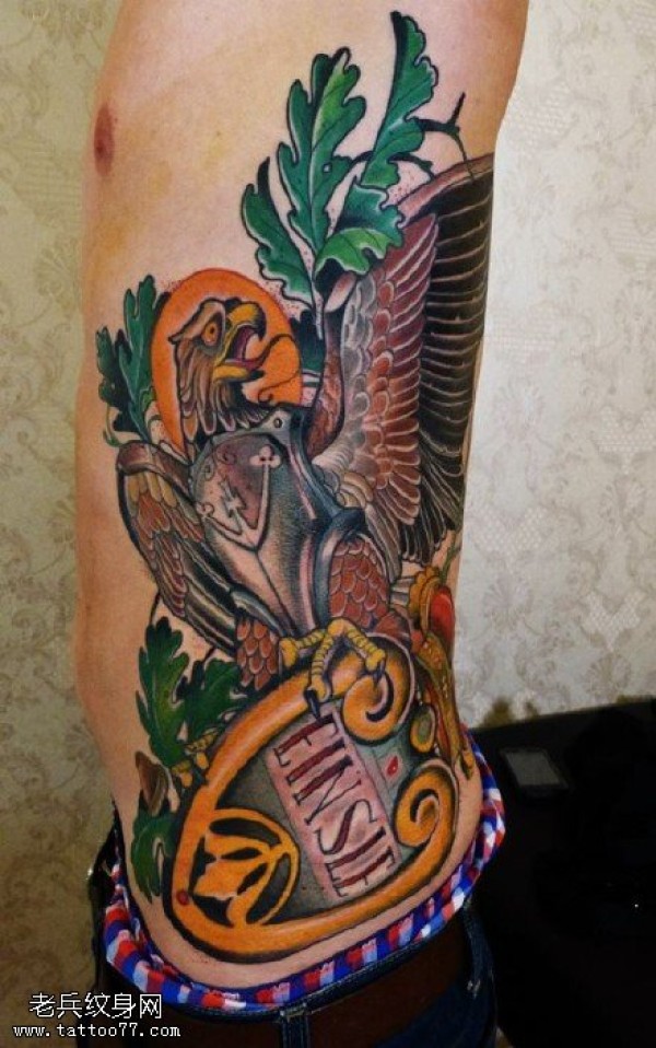 腹部的雄鹰纹身图案
