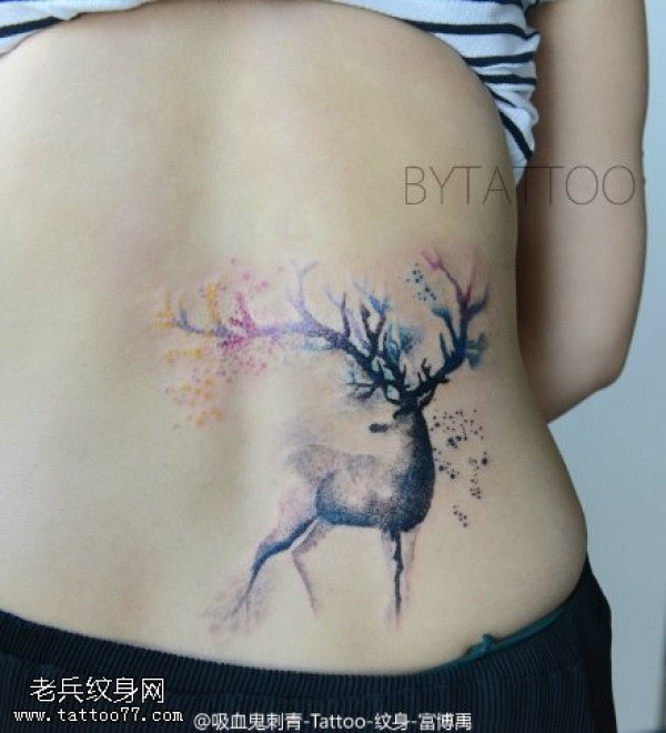 分享一款腰部时尚性感的蝶恋花纹身图案_腰部纹身图案大全_纹身图吧