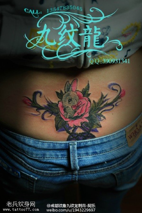 女性腰部莲花花纹刺青_腰部纹身图案大全_纹身图吧