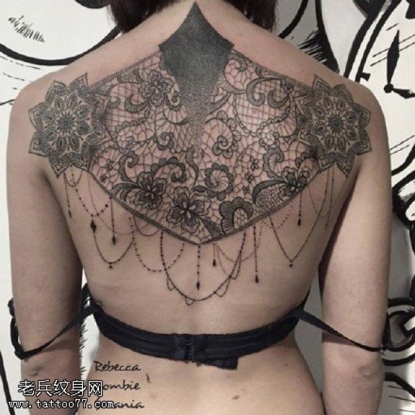 背部的梵花蕾丝纹身图案
