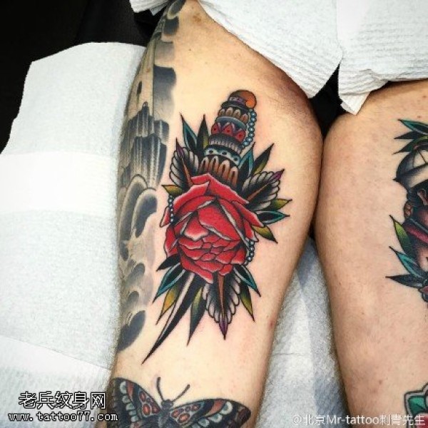 传统花腿纹身--18张传统风格的大花腿纹身图案作品