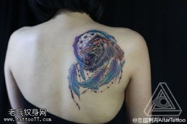 肩部的捕梦网老虎纹身图案