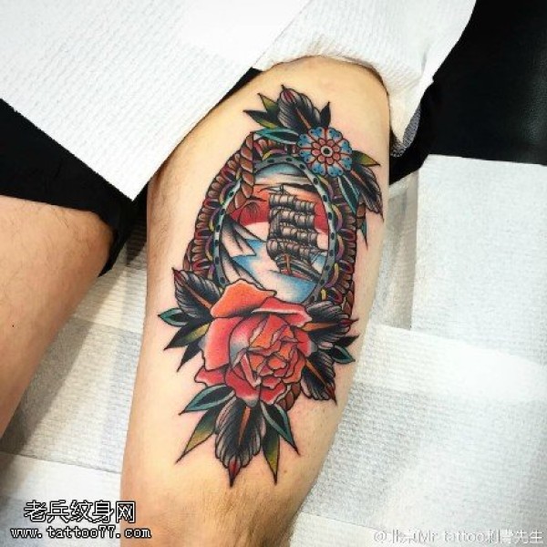 传统花腿纹身--18张传统风格的大花腿纹身图案作品