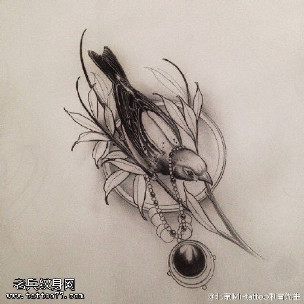 手稿翠鸟纹身图案