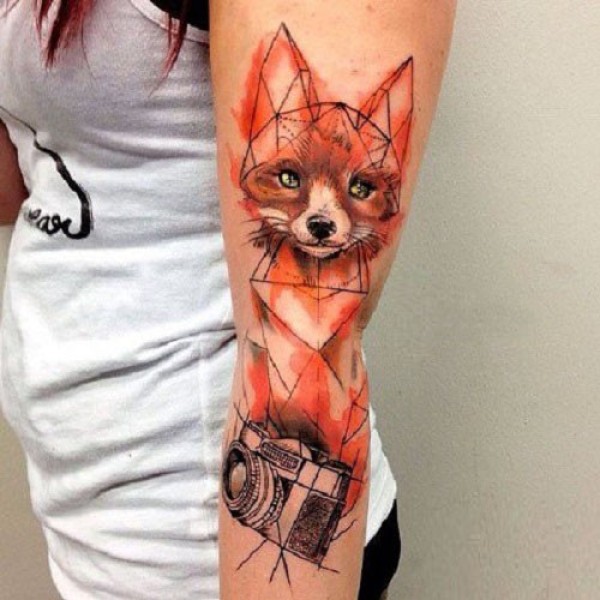 可爱迷人的手臂狐狸纹身图案