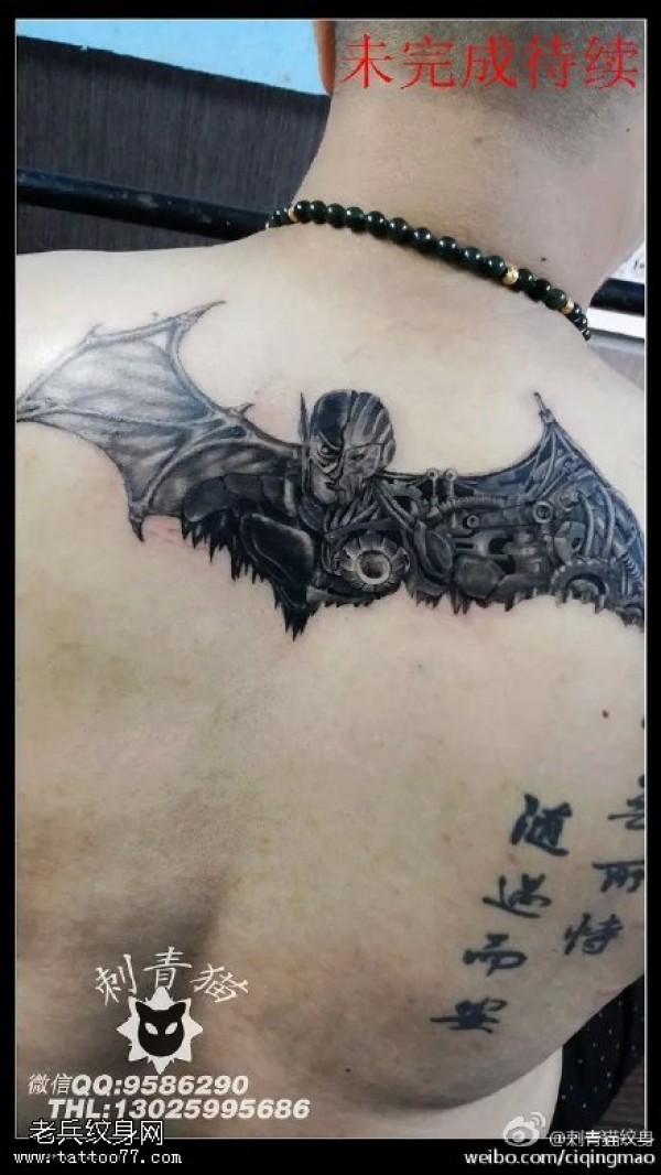 背部的蝙蝠侠纹身图案