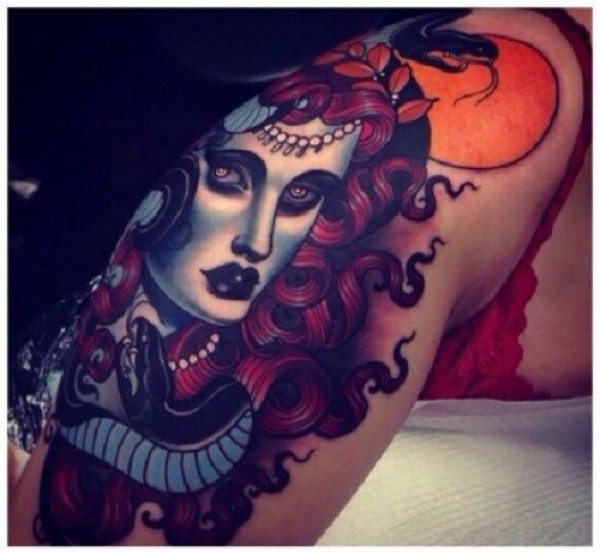 传统花腿纹身--18张传统风格的大花腿纹身图案作品