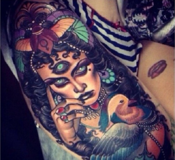传统花腿纹身--18张传统风格的大花腿纹身图案作品