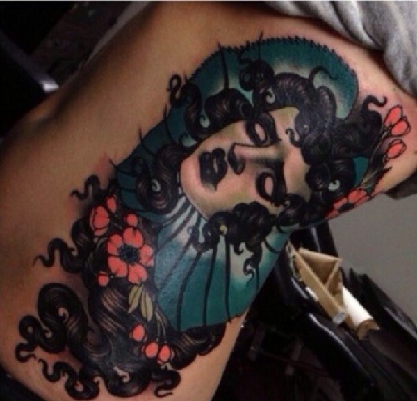 传统花腿纹身--18张传统风格的大花腿纹身图案作品