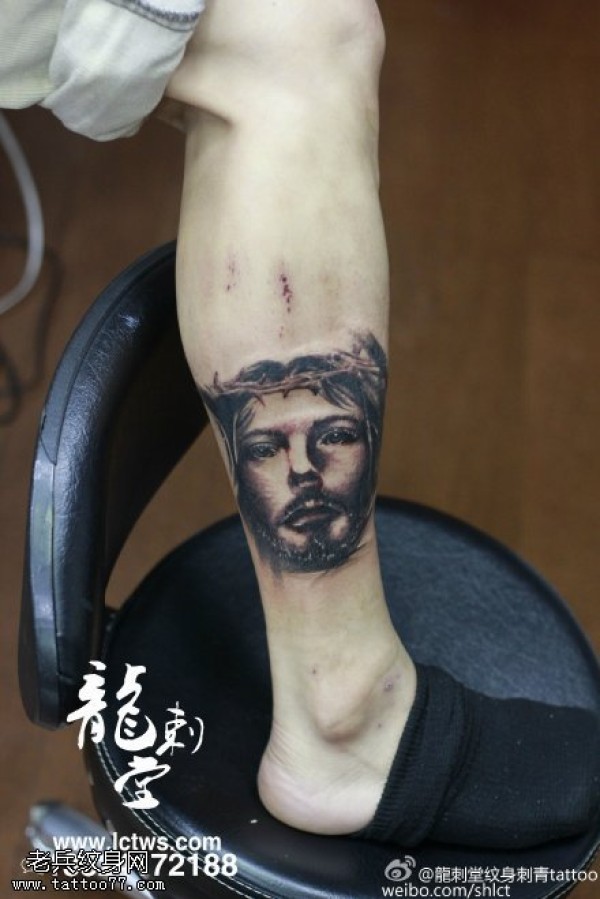 腿部荆棘肖像纹身图案