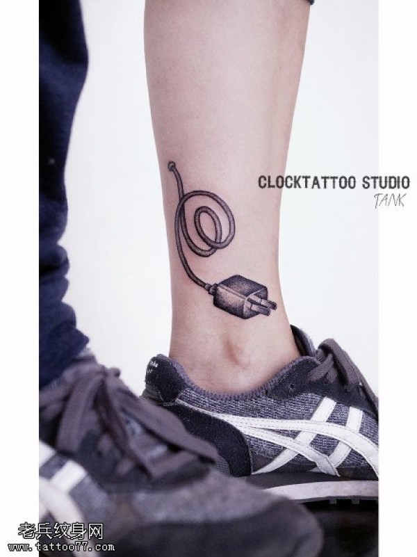小腿上的插头纹身图案