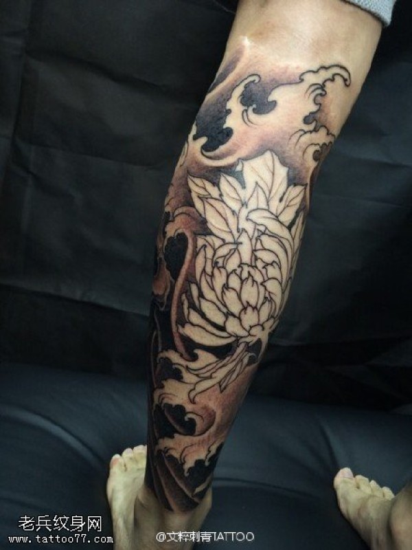传统鲤鱼花小腿纹身_腿部纹身图案大全_纹身图吧