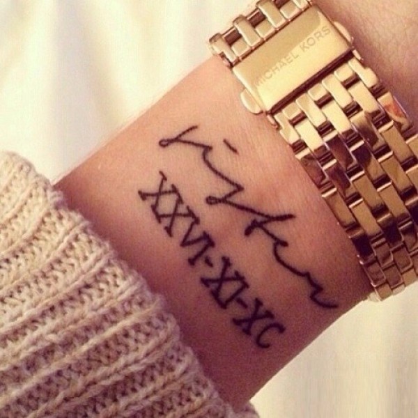 手腕上简单的英文字母纹身图