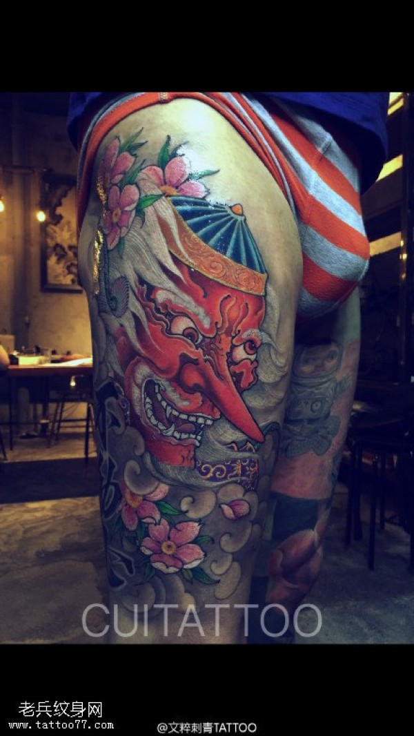 日式风格的传统花腿纹身作品欣赏