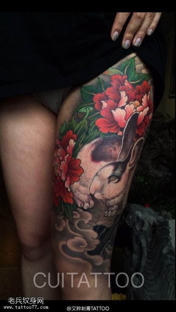 传统花腿纹身--18张传统风格的大花腿纹身图案作品