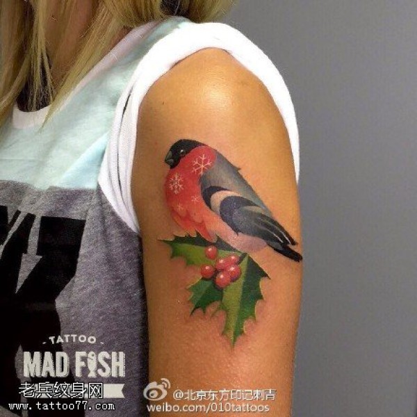 女生肩花纹身_15张女性双肩对称的肩花纹身图案作品图片