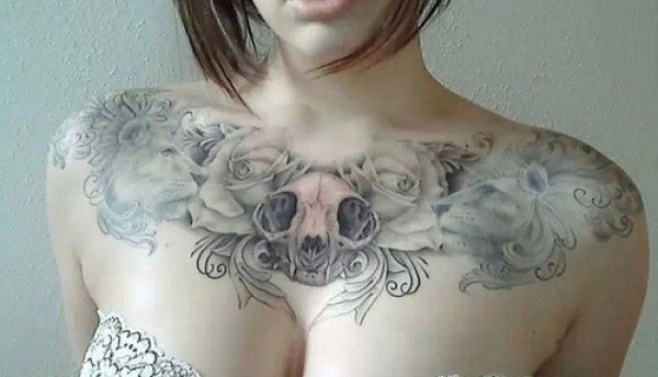 女性大花胸纹身_43张霸气漂亮的女性大花胸纹身图案作品