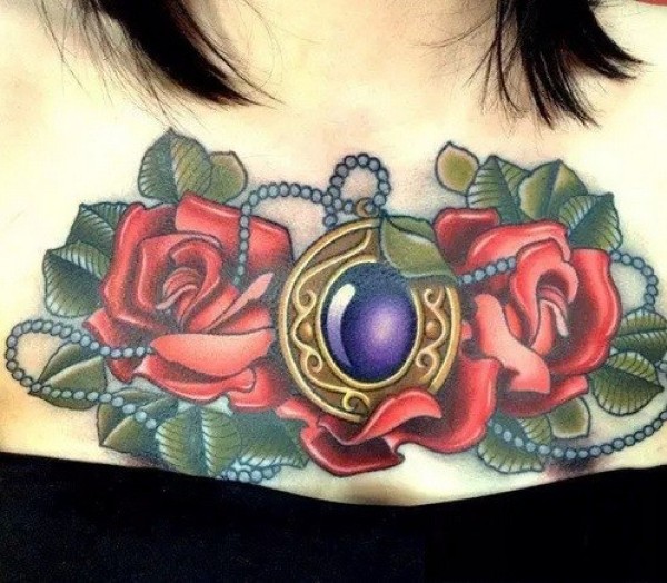 女性大花胸纹身_43张霸气漂亮的女性大花胸纹身图案作品