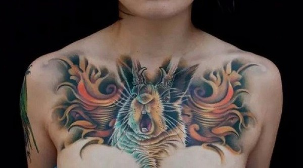 女性大花胸纹身_43张霸气漂亮的女性大花胸纹身图案作品