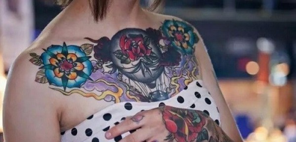 女性大花胸纹身_43张霸气漂亮的女性大花胸纹身图案作品