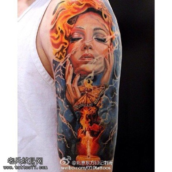 肩膀欧美女郎纹身图案