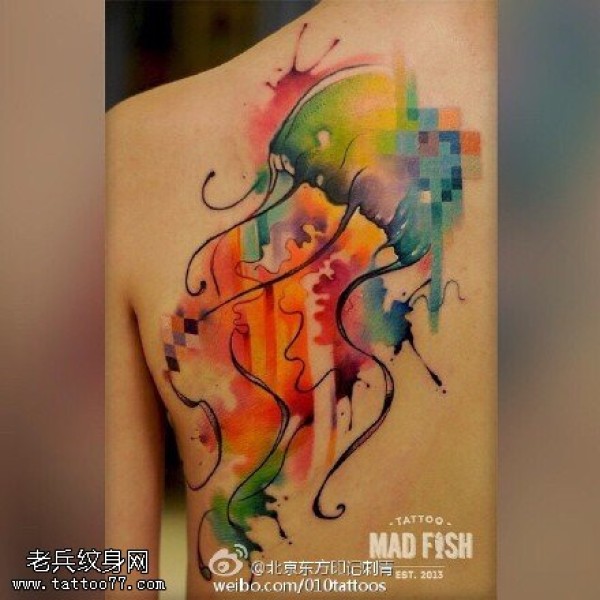 肩膀水彩的水母纹身图案