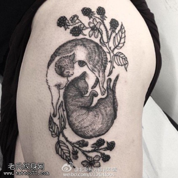 女生肩花纹身_15张女性双肩对称的肩花纹身图案作品图片