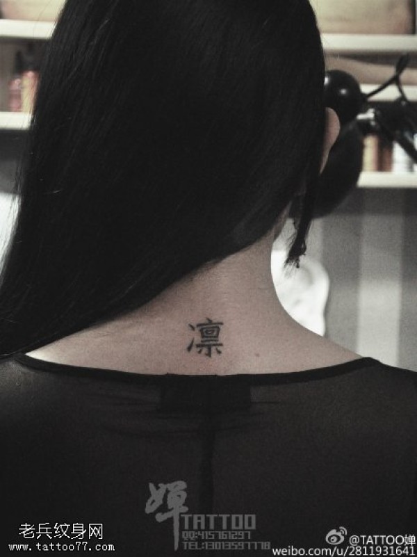 后颈部纹身小图--9张女生脖子后颈处的简约纹身图案
