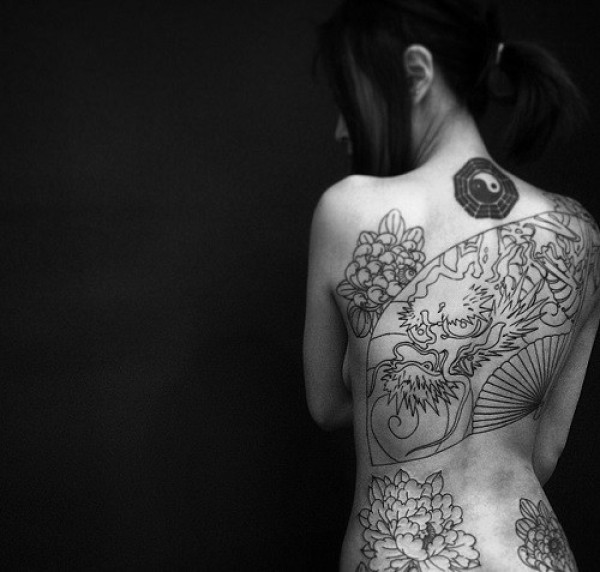 性感女生满背创意文身作品