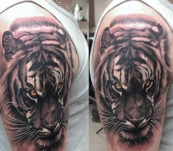 霸气半胛老虎纹身_动物纹身图案大全_纹身图吧