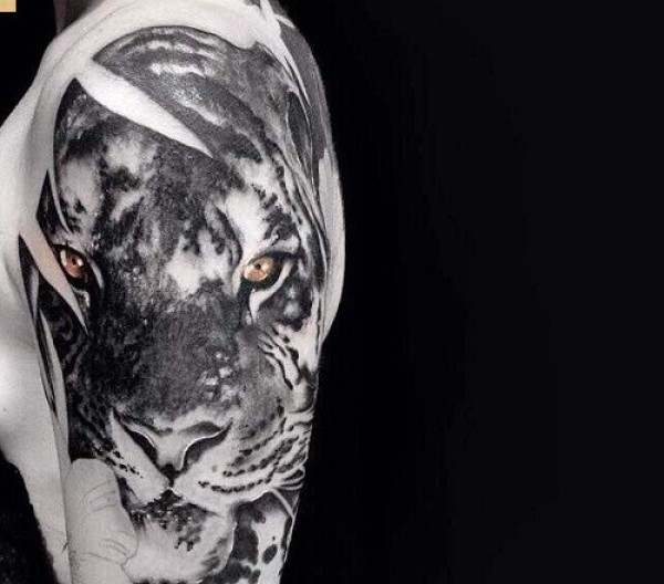 霸气半胛老虎纹身_动物纹身图案大全_纹身图吧