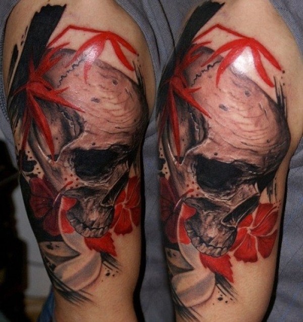枫叶纹身骷髅文身彩色刺青_男士小图_骷髅纹身图案大全_纹身图吧