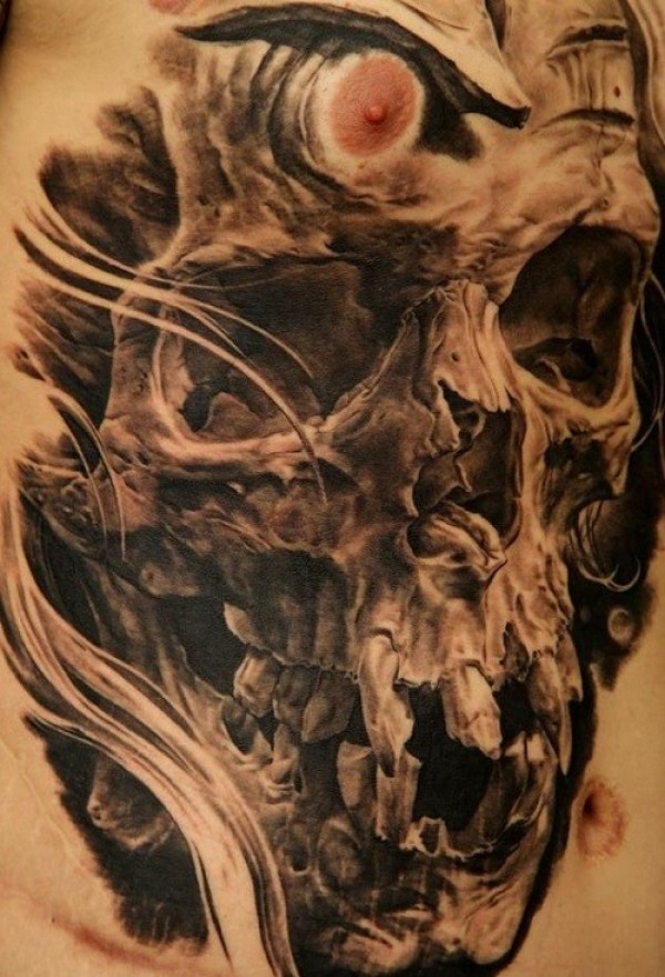 侧腰女骷髅刺青图案图片_骷髅纹身图案大全_纹身图吧