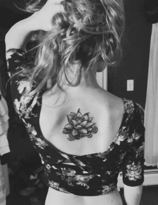 女生后腰纹身黑白灰风格抽象线条纹身图案