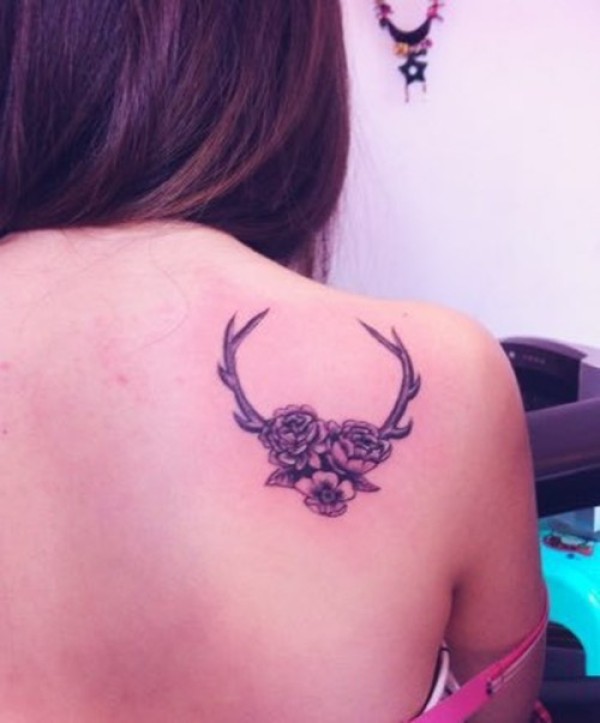 女生肩花纹身_15张女性双肩对称的肩花纹身图案作品图片