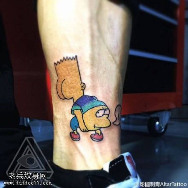 脚腕上逗比的小人纹身图案