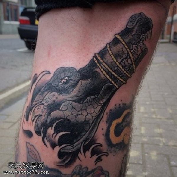 德国恐龙纹身眼镜蛇和卡通鳄鱼纹身水彩动物图案纹身