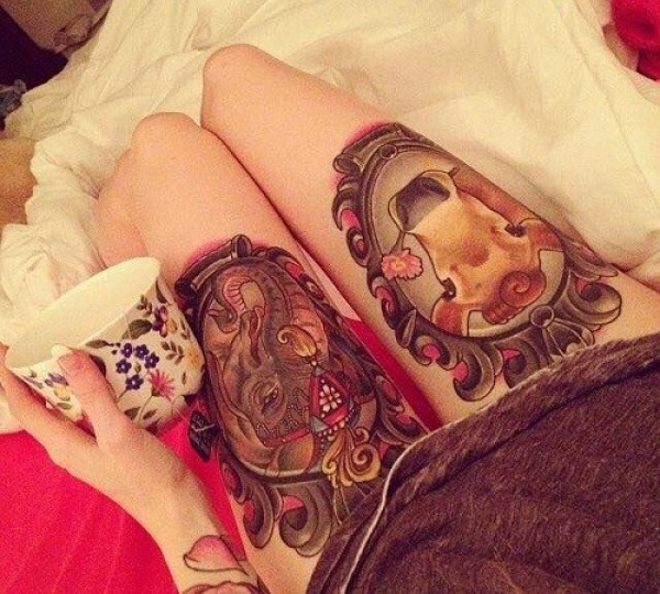 传统花腿纹身--18张传统风格的大花腿纹身图案作品