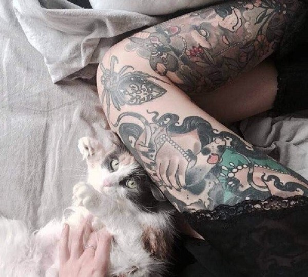 传统花腿纹身--18张传统风格的大花腿纹身图案作品
