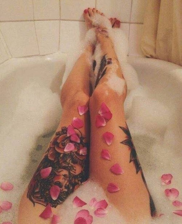 女孩腿部唯美刺青_腿部纹身图案大全_纹身图吧
