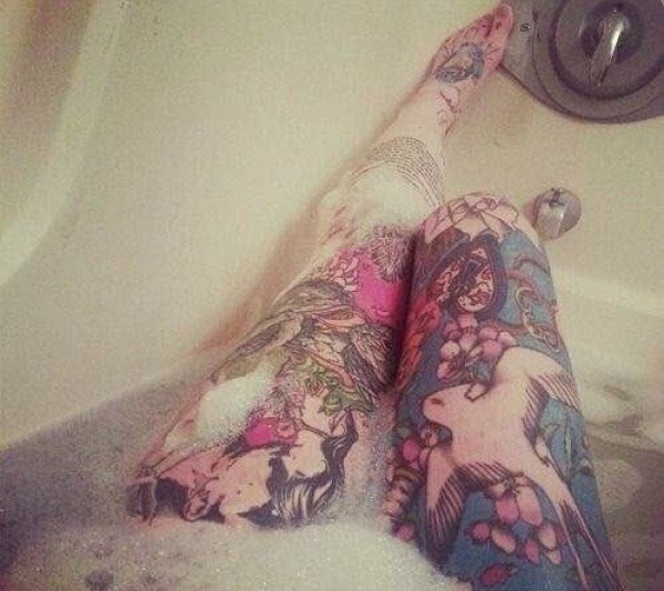 女孩腿部唯美刺青_腿部纹身图案大全_纹身图吧