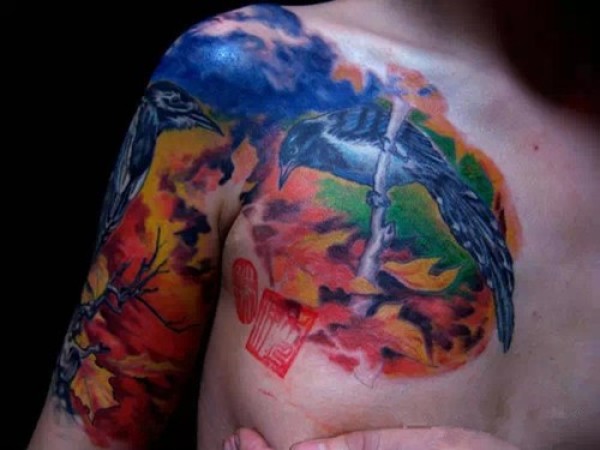 女生肩花纹身_15张女性双肩对称的肩花纹身图案作品图片