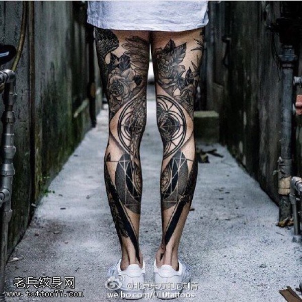 花腿纹身--一组大黑腿纹身图案作品欣赏
