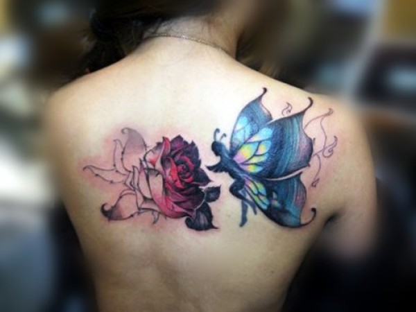 女生肩花纹身_15张女性双肩对称的肩花纹身图案作品图片