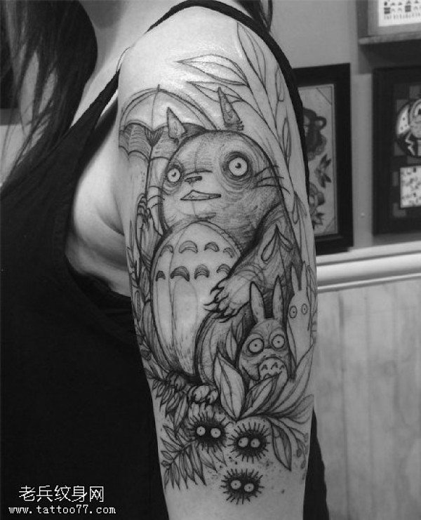 肩部龙猫纹身图案