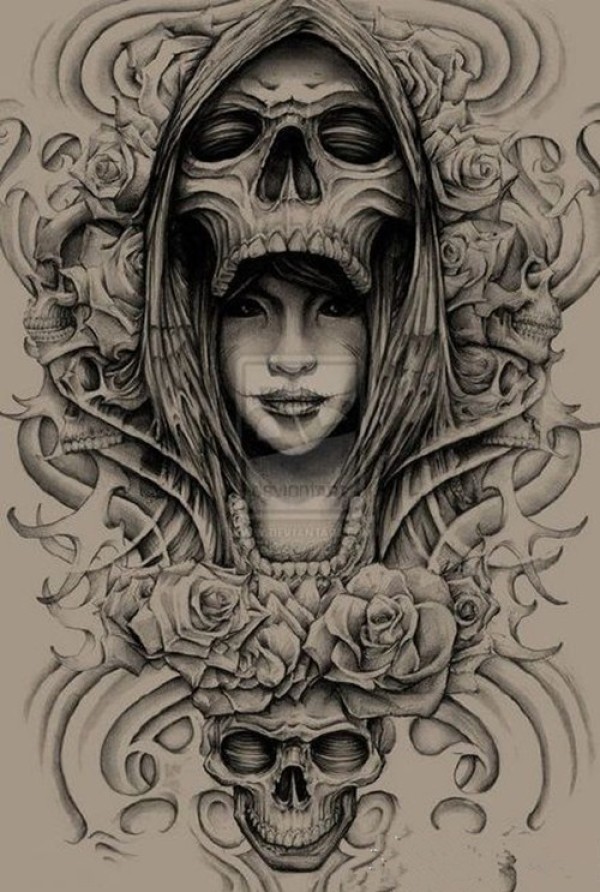 能面万媚纹身手稿_52张日式能剧面具纹身手稿图案素材欣赏