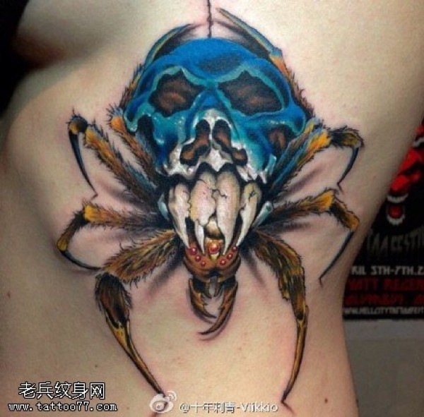 胸部骷髅脸甲壳虫纹身图案