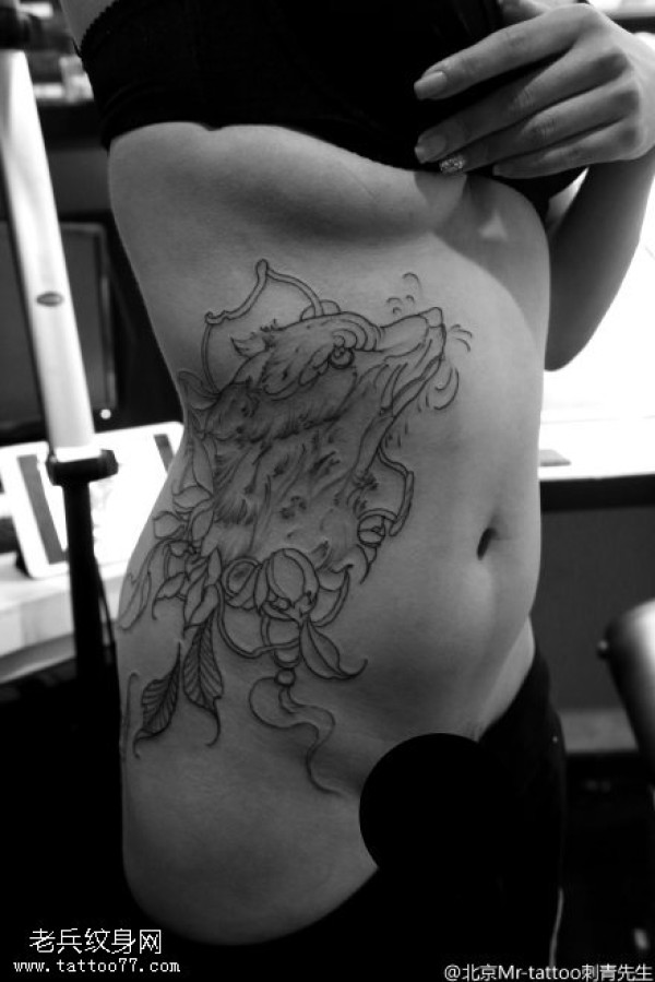 侧腰霸气老虎头纹身_腰部纹身图案大全_纹身图吧